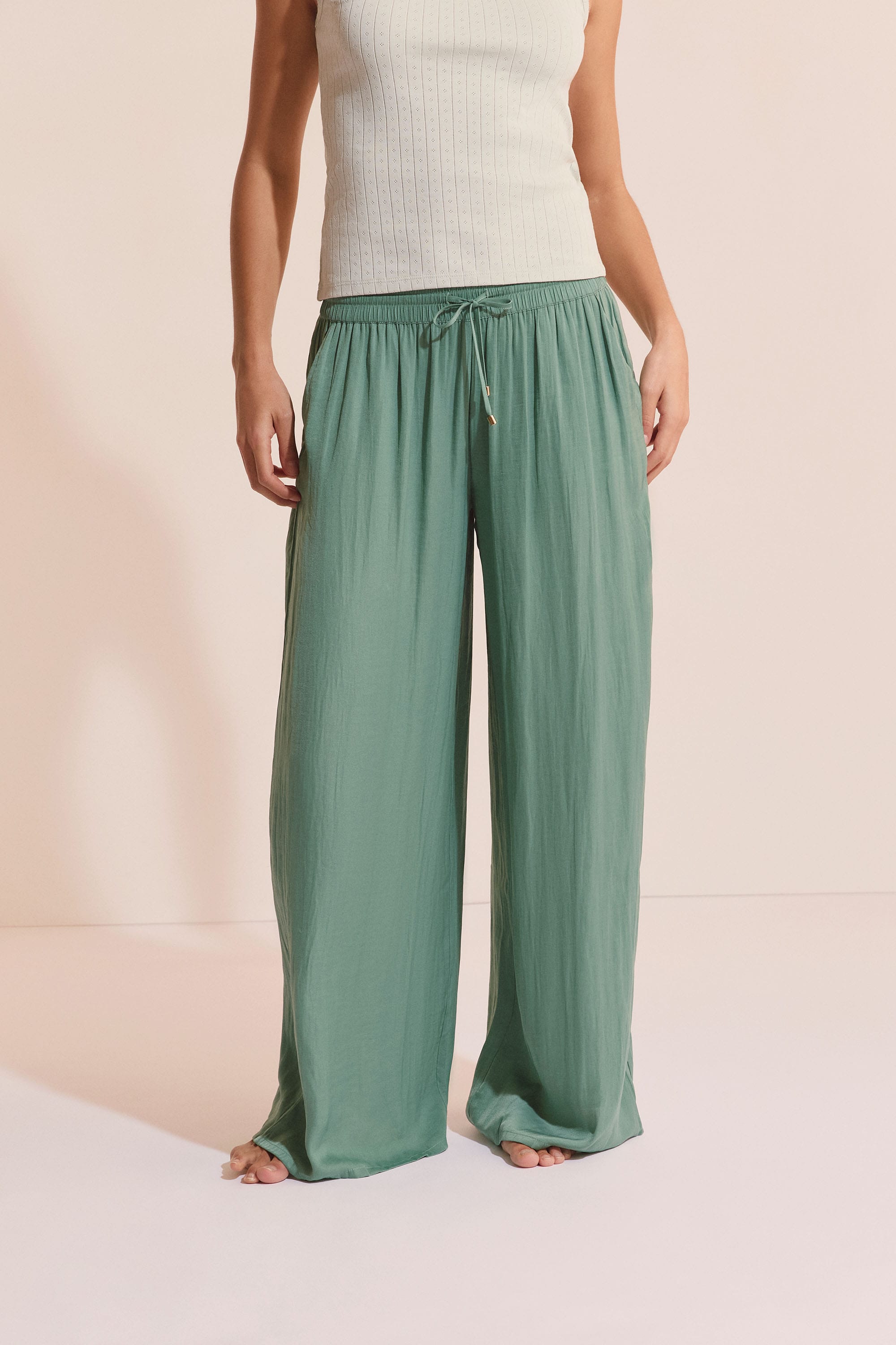 Large et délicatement satiné, ce pantalon à fronce offre un confort parfait et des nuits très douces. Ajoutez le caraco coordonné pour compléter le look.