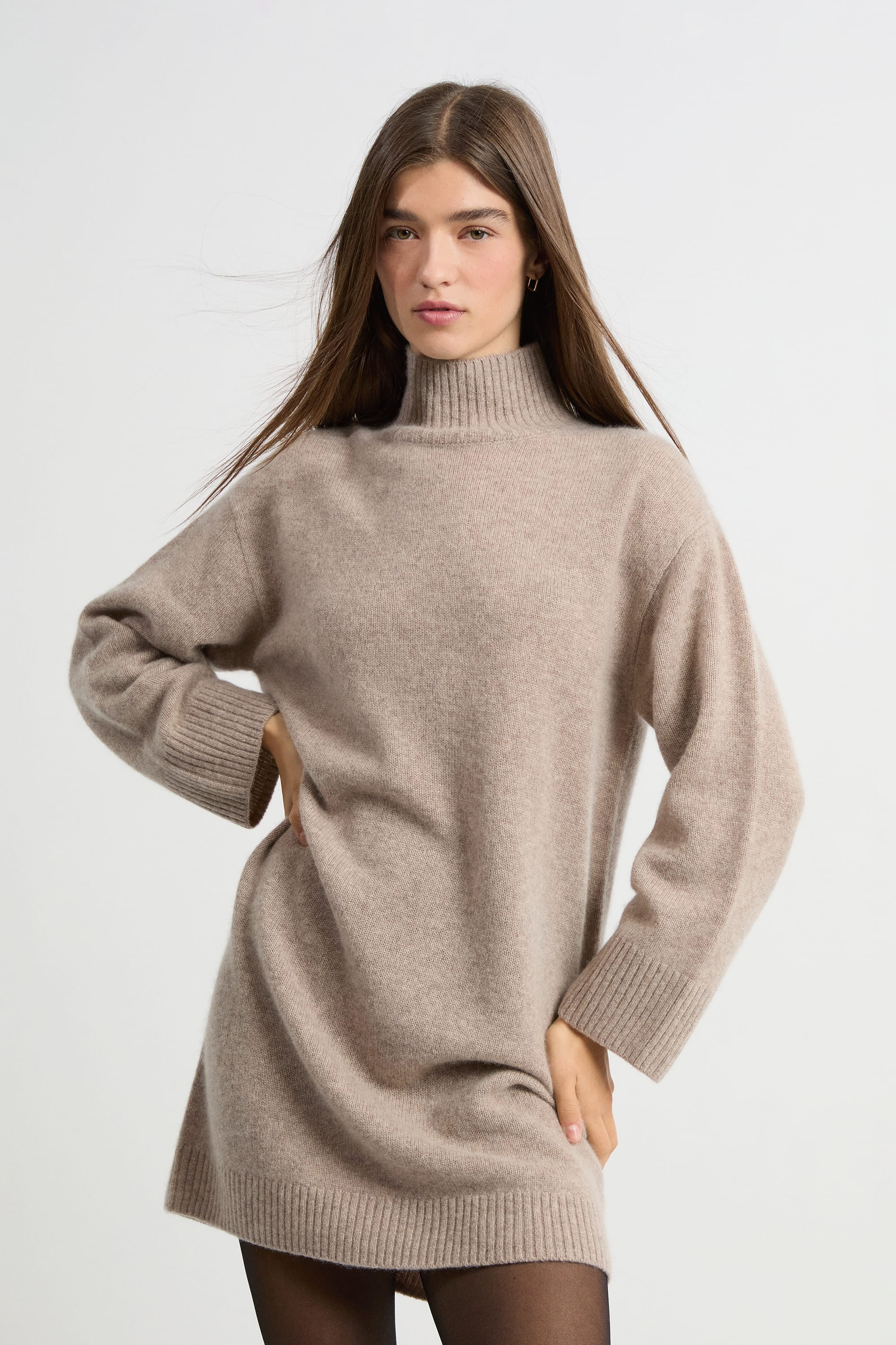 Sobre et élégante, ce robe pull manches longues est confectionnée en cachemire et opte pour un col montant.