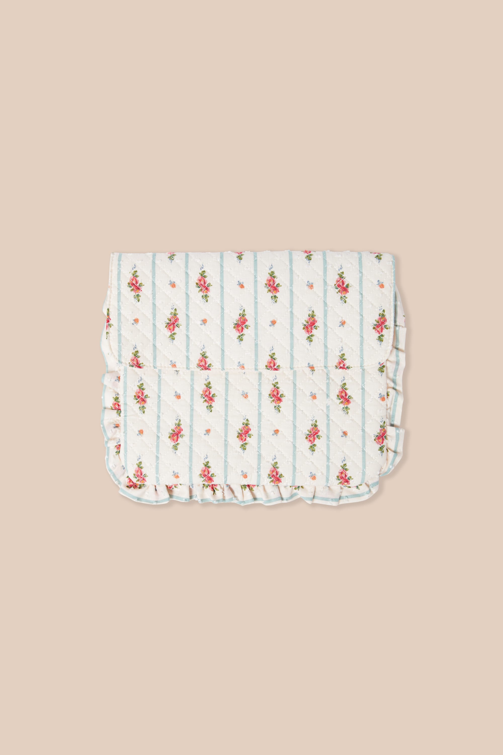 Trousse matelassée en coton à motifs fleurs avec bords froufrou